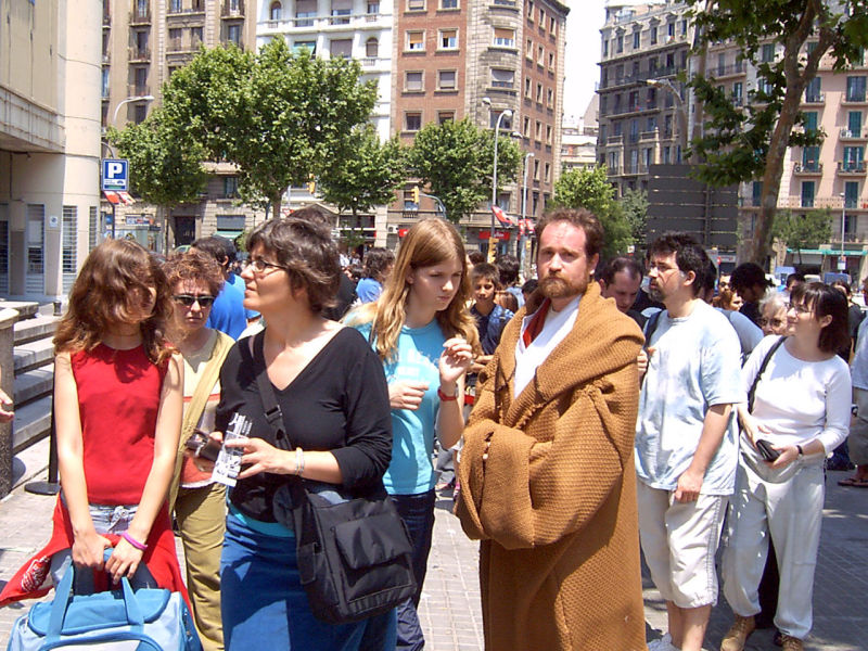 Ni que decir tiene que mi disfraz ha sido todo un éxito. Ha sido fácil, teniendo en cuenta el relevante papel de Obi-Wan en el último episodio de la saga Star Wars que hace menos de un mes se ha estrenado en el cine. Además de que es un personaje muy estimado por el público. Sin embargo, también me he currado la barba: llevo más de un mes sin recortármela!!!! jejeje... claro, para que se pareciera a la de Ewan McGregor en la pantalla :) La verdad es que ha valido la pena el esfuerzo. Además del calor tremendo que he pasado con ese traje (lleva túnica con capucha , a parte de un kimono y una camiseta debajo!!!) . Pero todos los esfuerzos han merecido la pena. Sobretodo me ha recompensado mucho el que mucha gente quisiera hacerse fotos conmigo (en fin... el ego también necesita de eso de vez en cuando :)